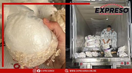 Droga oculta entre costales de cebolla en carretera Reynosa-San Fernando