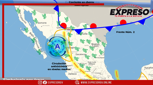 Además, interactuará con una vaguada en niveles medios de la atmósfera, que generará lluvias intensas en Tamaulipas; muy fuertes en San Luis Potosí; y fuertes en Coahuila y Nuevo León. Las precipitaciones podrían estar acompañadas de descargas eléctricas y posible caída de granizo.