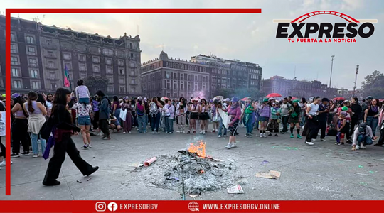 La protesta también se desarrolla nuevamente con edificios del Centro Histórico protegidos por vallas metálicas, una medida aplicada en los últimos años durante las marchas feministas con el argumento oficial de resguardar inmuebles históricos.